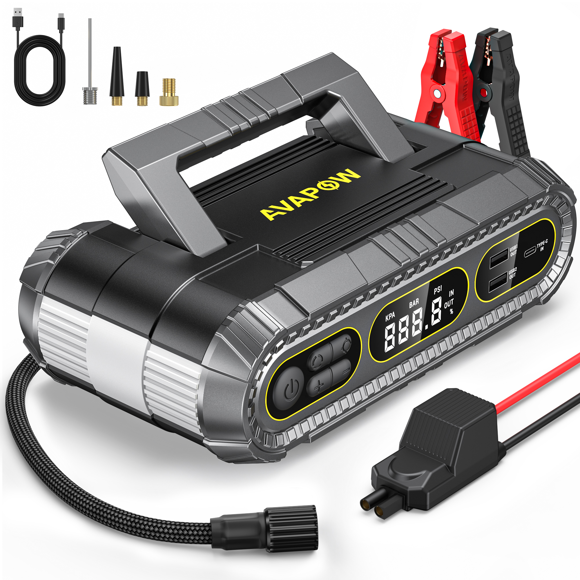 2025 AVAPOW Jump Starter with Air Compressor, 2000A Battery Jump Starter (up to 7.0L Gas/5.5L Diesel Engines)